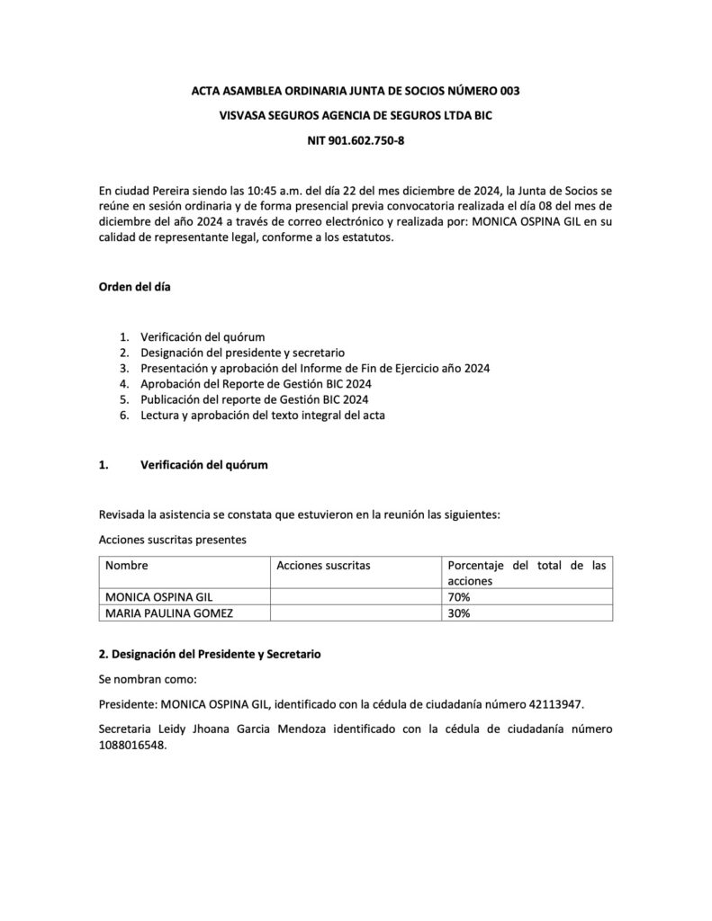 • Razón social de la organización: VISVASA SEGUROS AGENCIA DE SEGUROS LTDA BIC