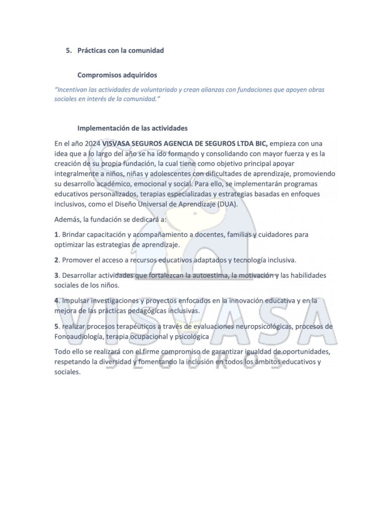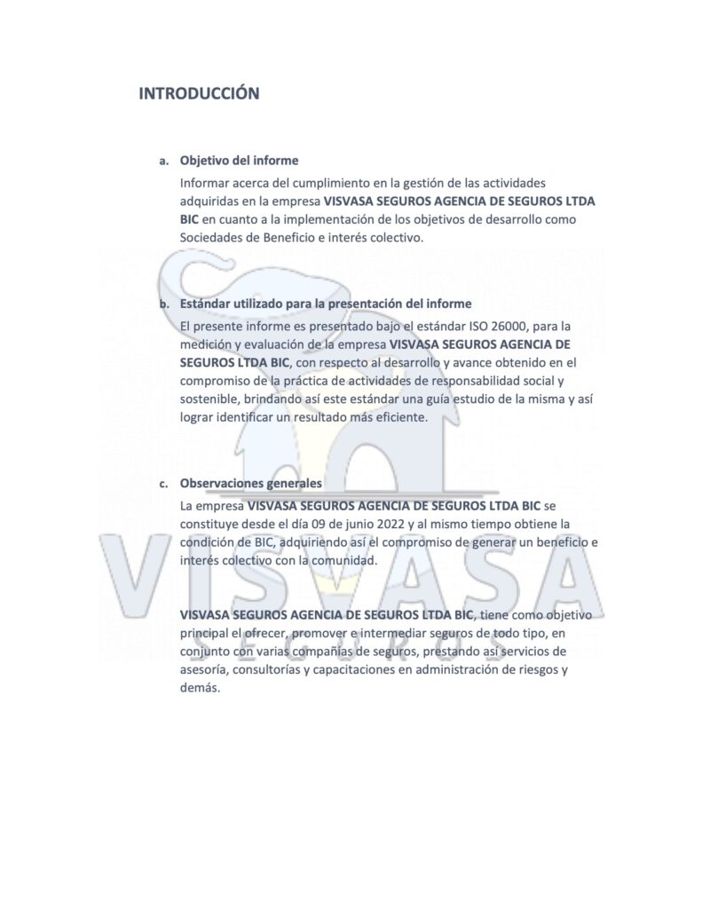 VISVASA SEGUROS AGENCIA DE SEGUROS LTDA BIC NIT 901603750-8 2022 ESTÁNDAR ISO 26000